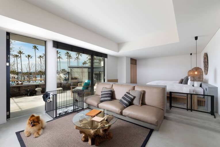 結婚式の前後もずっと一緒。マリブホテルの洗練された空間で愛犬と宿泊し、翌朝はテラスで海を見ながら優雅な朝食をお召し上がりいただけます◎